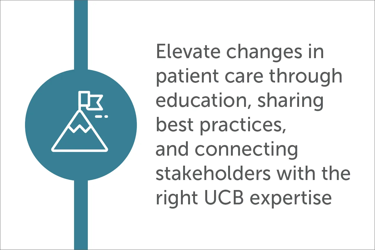 The UCB Ecosystem Partners Team identifies partners in health care who share a desire to champion a better path forward in care for immunology patients. We do this through education, bringing resources forward for early identification and diagnosis, as well as by sharing best practices across the nation that elevate care for immunology patients today and innovate for the future.